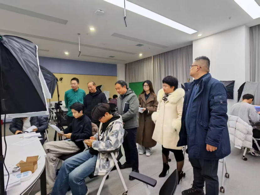 就在这时,院长助理李启松、师范学院院长任安忠、副院长王振龙、网络视听教研室主任王怡琼一行的身影出现了。没有多余的寒暄,他们径直走向操作台,瞬间为实训场注入了温暖与力量。